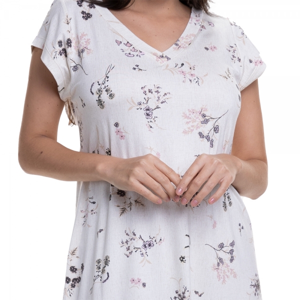 Informações do produto: Camisola em Viscolycra com Estampa Floral - Marfim