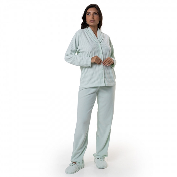 Pijama em Ultrasoft Grid com Abertura em Botões - Verde
