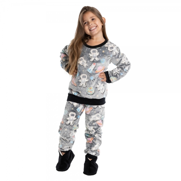 Informações do produto: Pijama Pelúcia Astronauta Infantil Unissex - PRETO