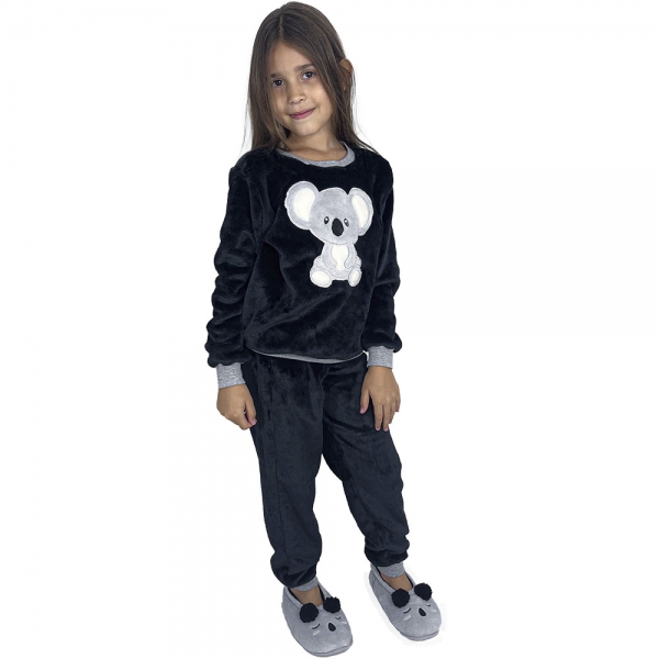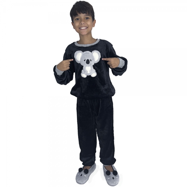 Informações do produto: Pijama Puff Kids Pelúcia Fleece Coala Infantil Unisex - Preto