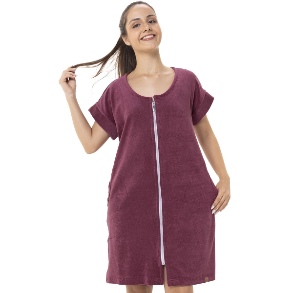 Roupão Feminino Adulto Atoalhado com Fechamento em Zíper - Bordô
