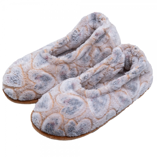 Sapatilha Pelúcia Coração - Bege