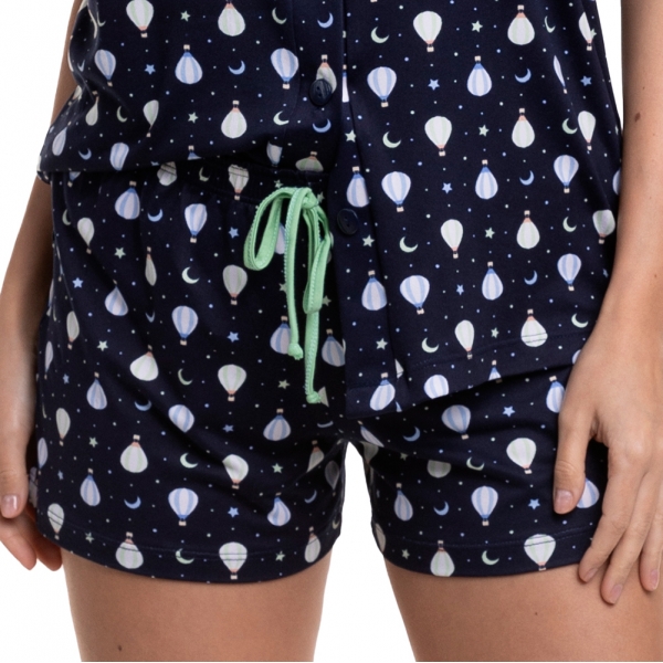 Informações do produto: Short Doll Estampado de Manga com Botões em Modal Summer - Marinho